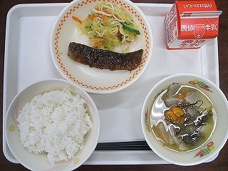 子どもたちは、濃い目の味付けのさんまのかば焼き、磯のいい香りのみそ汁と