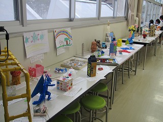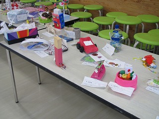 子どもたちが、夏休み中に制作した自由研究や手芸・工作を、