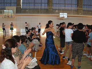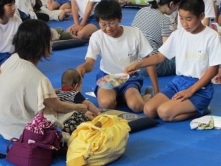 10名もの保存会の皆さんがご指導下さり、蒸し暑い体育館の中で