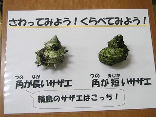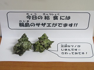 6年生はランチルームで漁協の方から、サザエについて説明を聞きました。