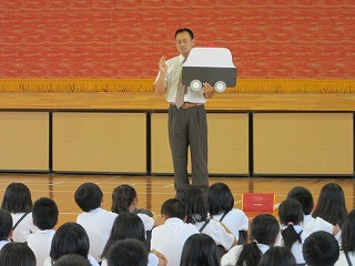 全校集会では、広島に原爆が落とされたのが68年前の今日
