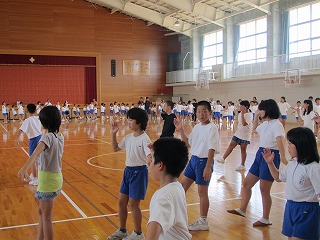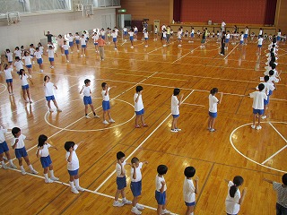 全校登校日に合わせて、全校児童で三夜おどり練習がありました。