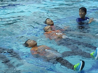 ペットボトルを持って浮く練習 助ける時は腹ばいで なにか道具を使おう!