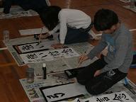 今年は、3~6年生は体育館で一斉に書き初めをしました。