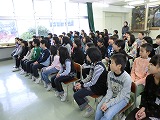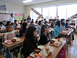 給食の時間には、漁協の方に6年教室に来ていただき、