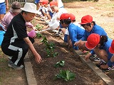 公民館の方々に苗の植え方を教えていただきました。