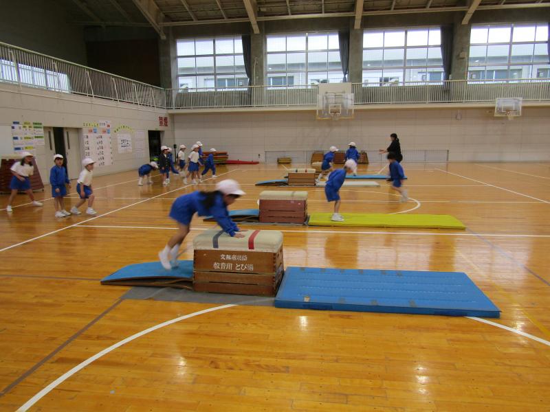 1年生が跳び箱の授業をしていました。