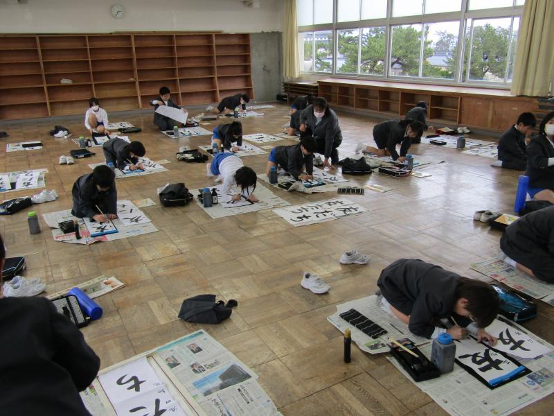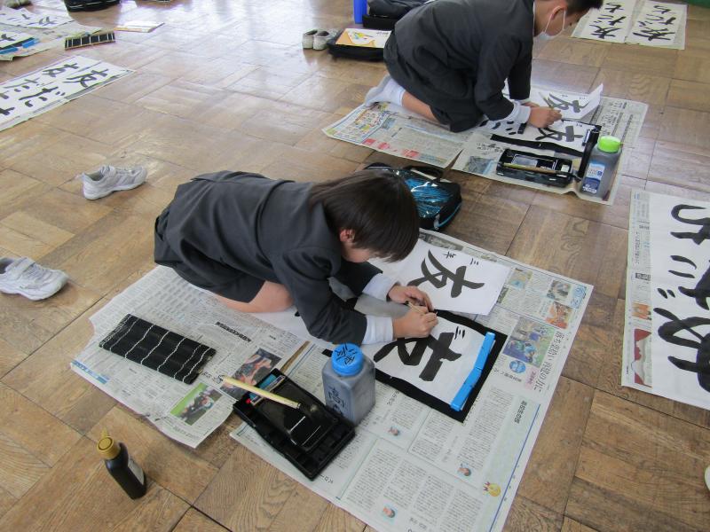 3年海組のみなさんが書き初め練習をしていました。