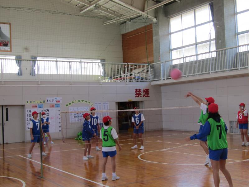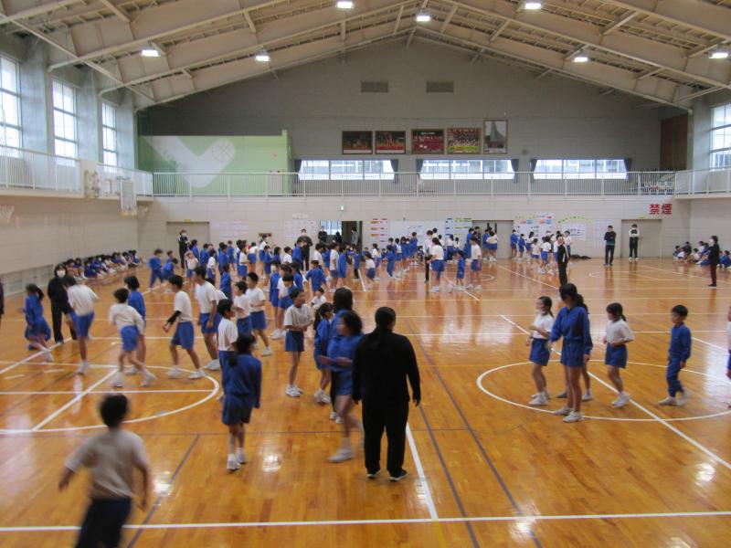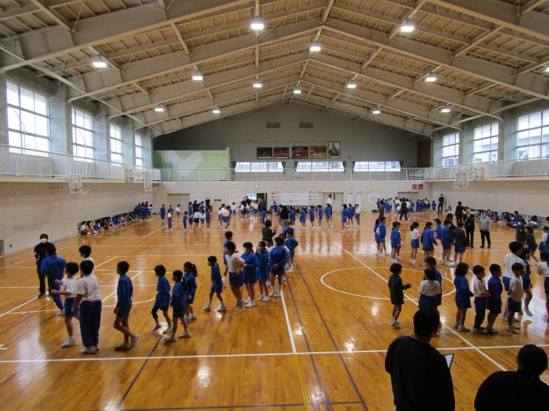 ぐんぐんタイムから5時間目にかけて縦割り班対抗の8の字集会が行われました。