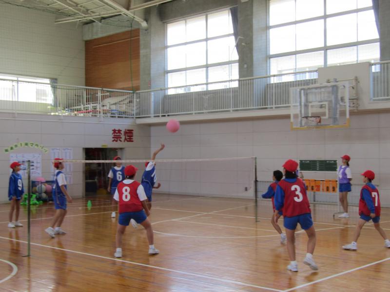 ネットをはさんでボールを相手コートに