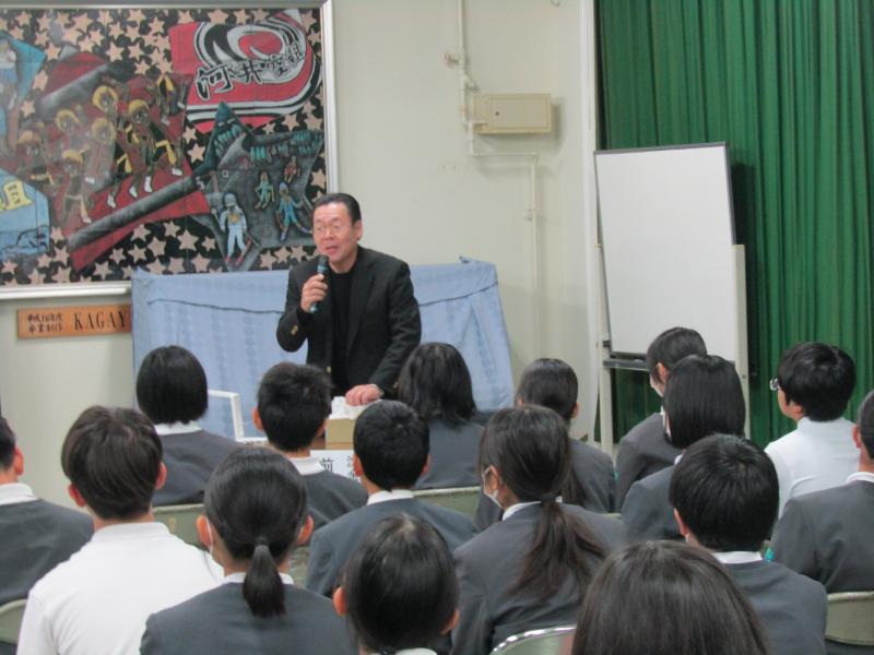 6年生道徳で前古さんを招いてお話を聴きました。