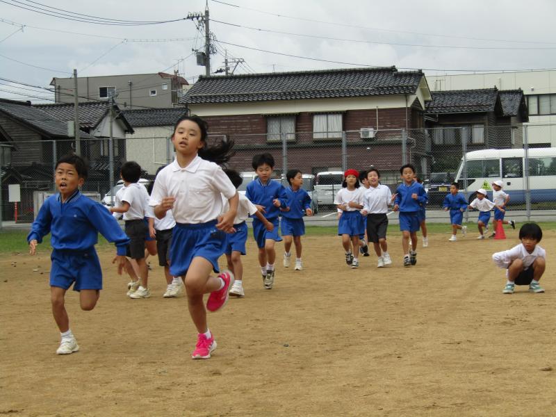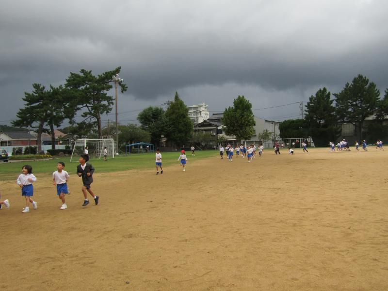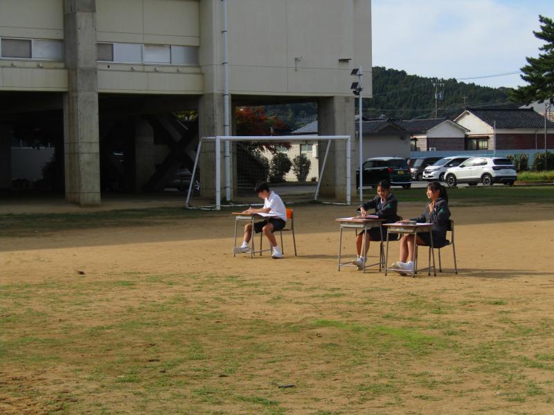 6年生が地震及び津波を想定した避難訓練をしている様子です。