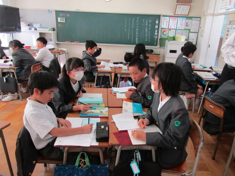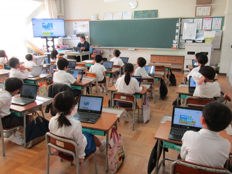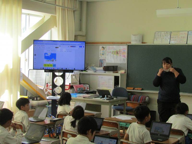 くじらぐもの学習で、クロムブックを使って交流をしています。