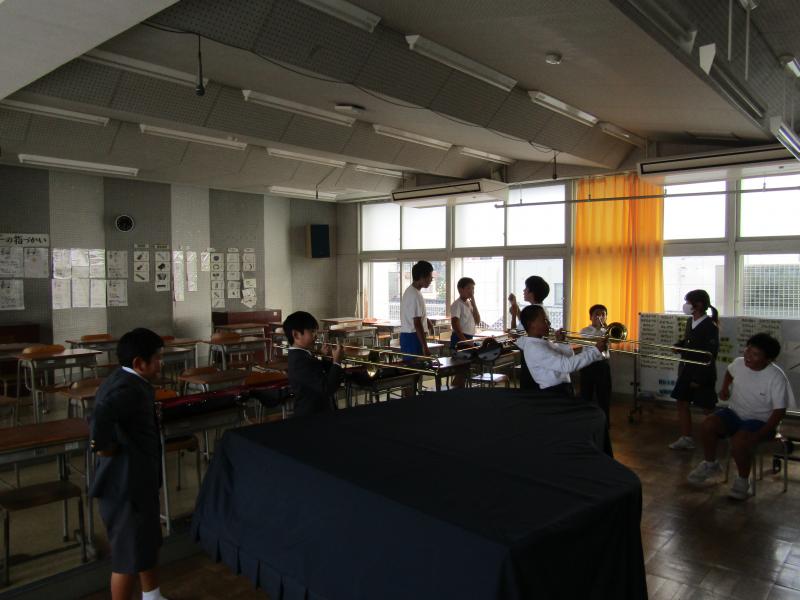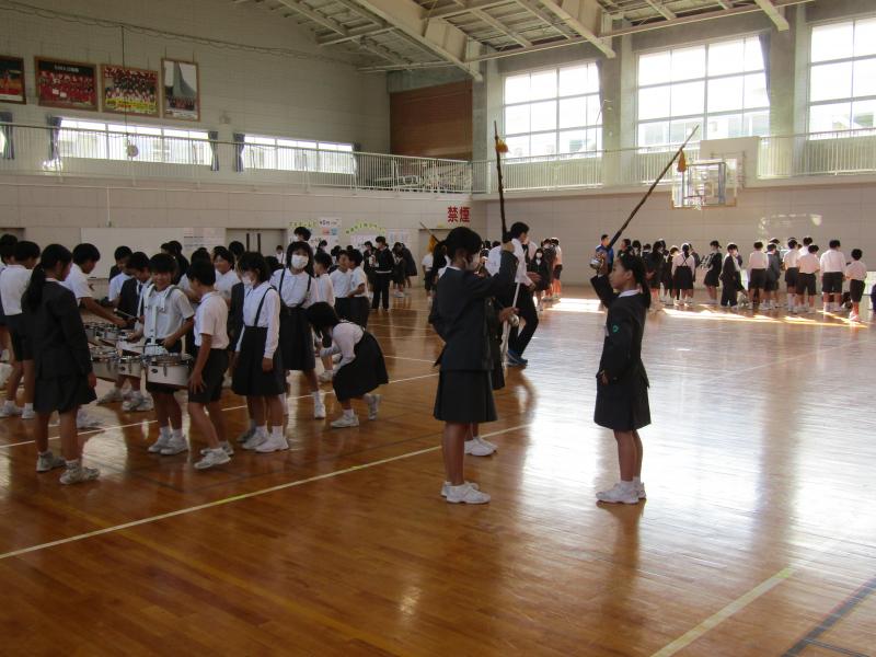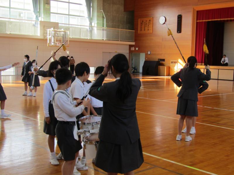 朝や昼休みの時間を活用して金管鼓隊の練習をしています。