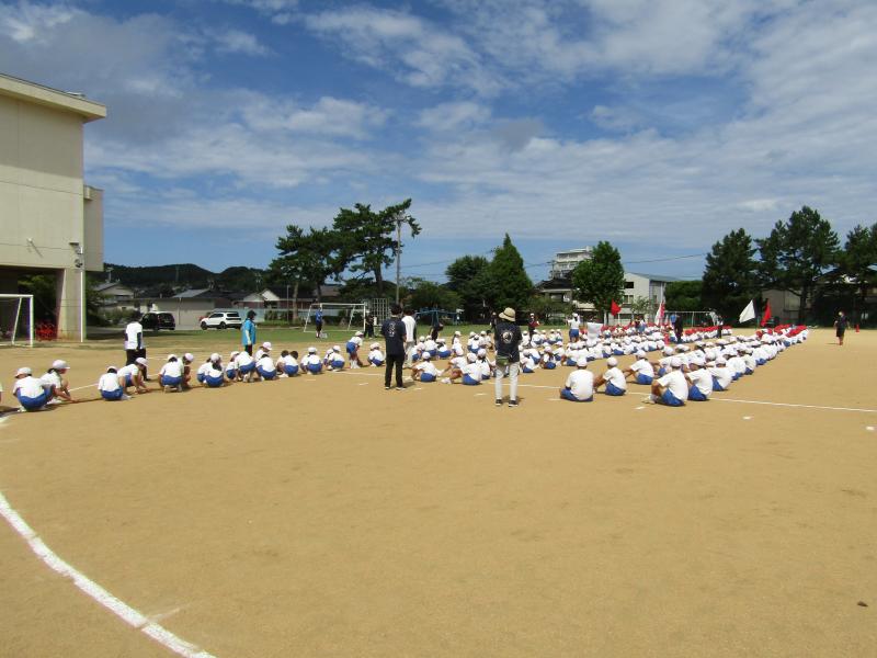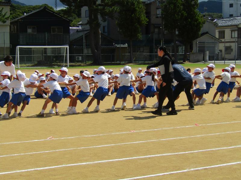 全校綱引きの練習がありました。