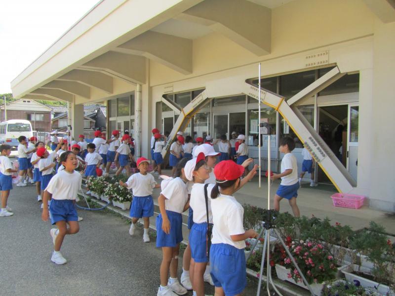 綱引き練習後の児童玄関です。
