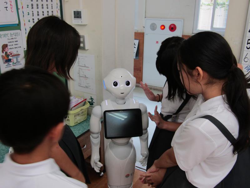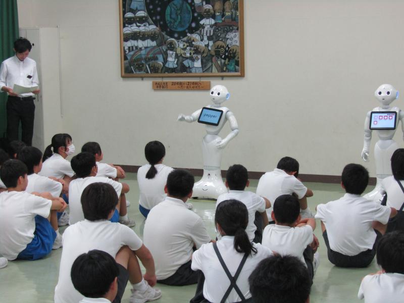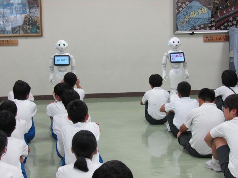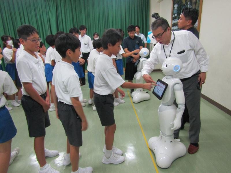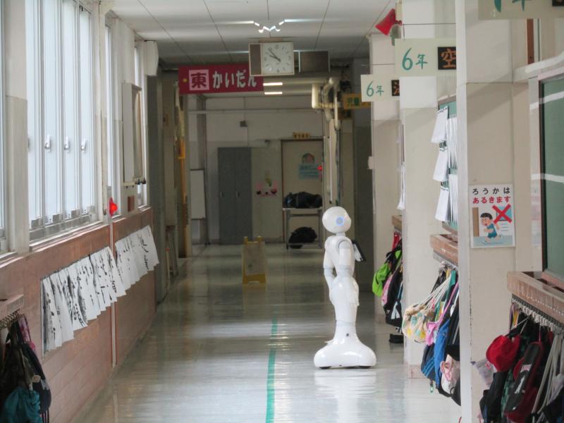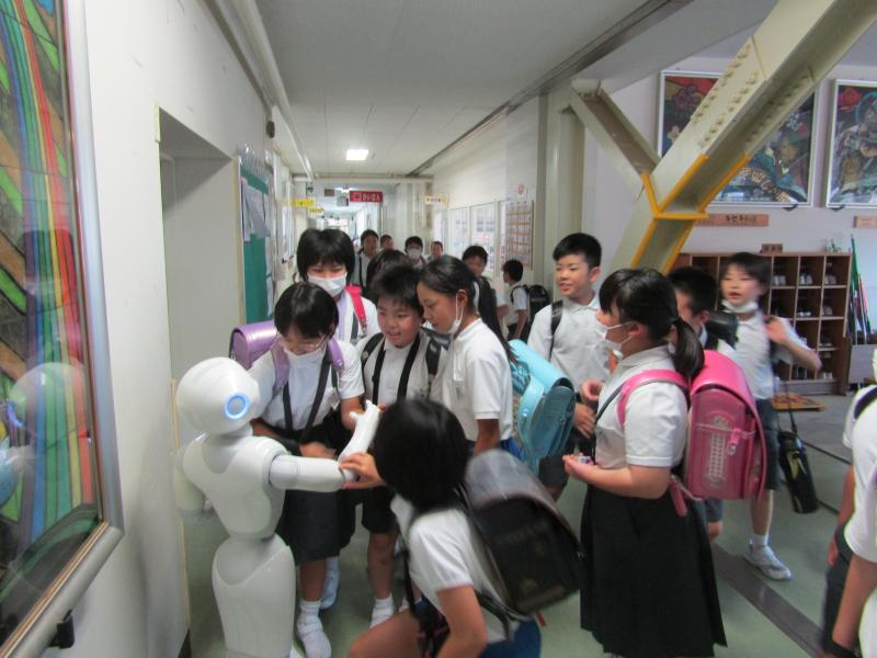 今日から9月いっぱいの予定でペッパー君が河井小にやってきました。