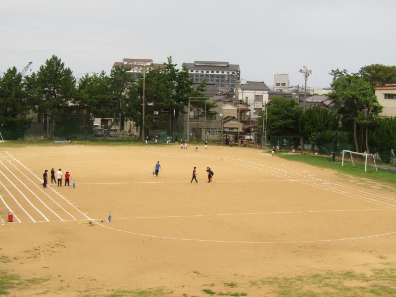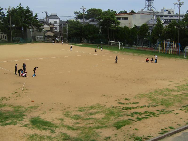 1日の放課後、若手の先生が運動会のライン引きをしてくださいました。