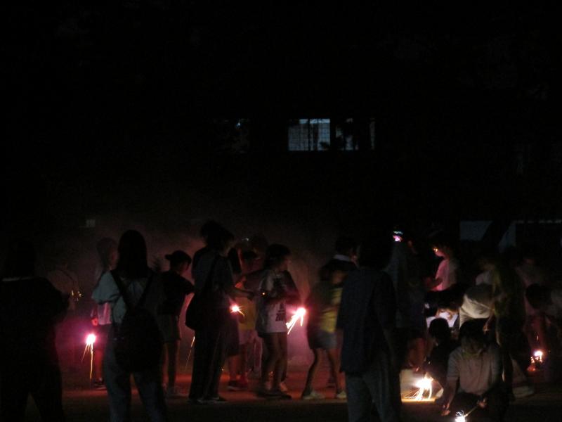 夜の運動場での花火は不思議な感覚ではないでしょうか?