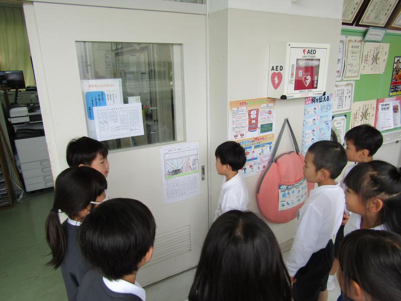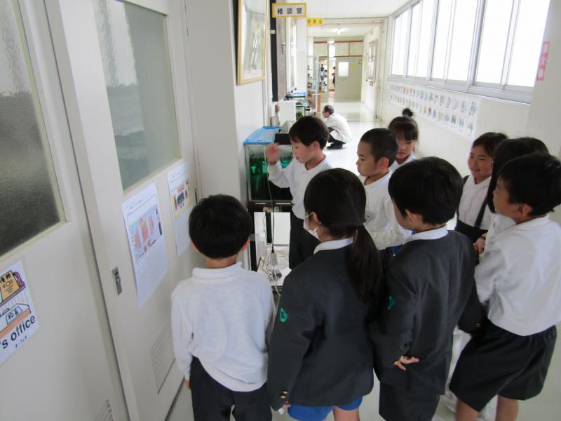 2年生が1年生に学校の中を紹介しました。
