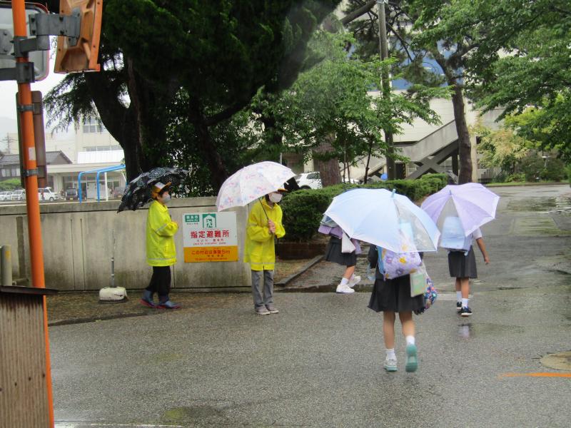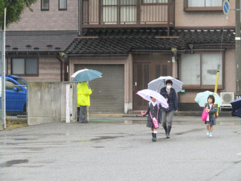 雨の中、見守りをしてくださるボランティアの皆さんです。