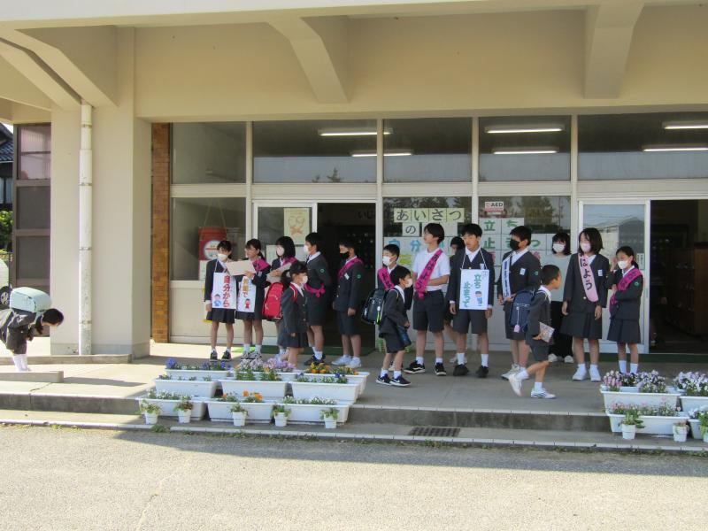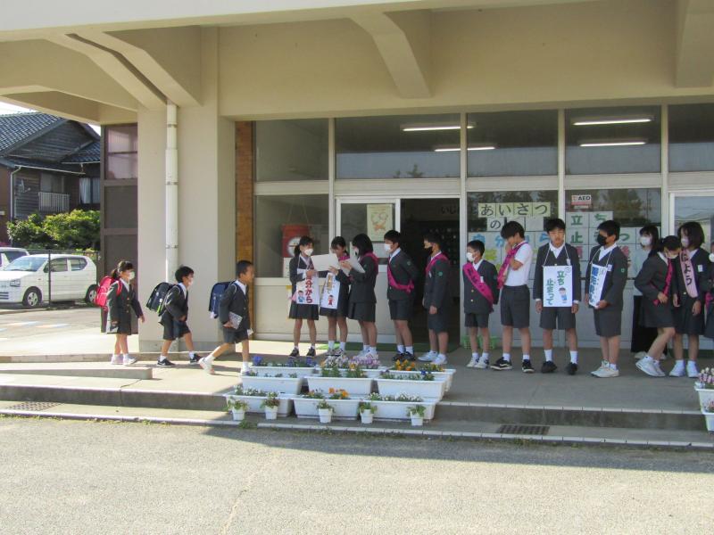 先週のあいさつ運動であいさつチャンピオンが選ばれました。