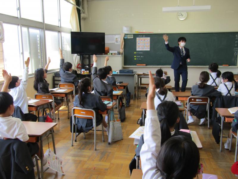 3年生の算数です。手がピンと真っすぐに挙げられています。