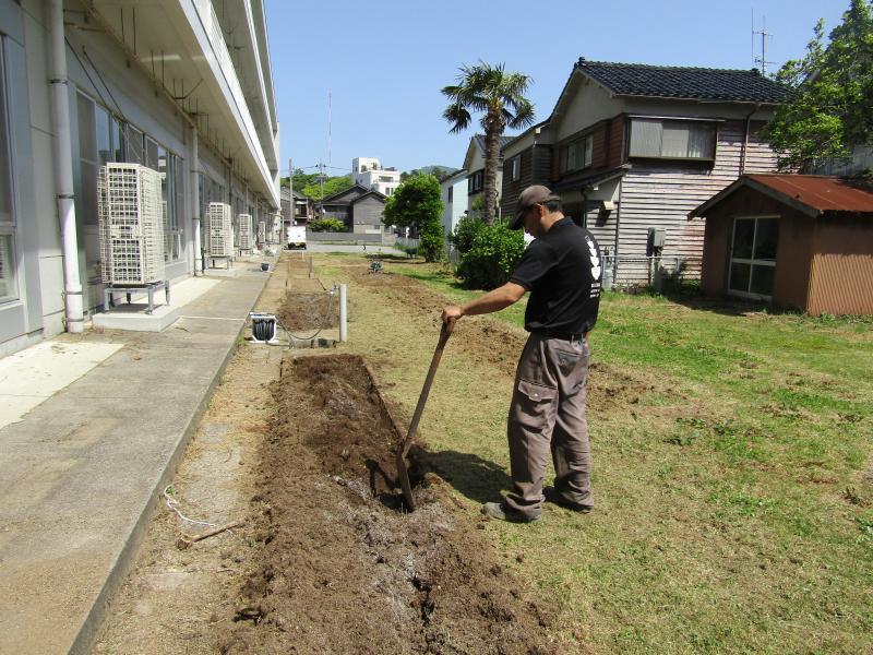 2023年5月1日 08時42分遠足の日に校務士さんが畑を耕して下さいました。
