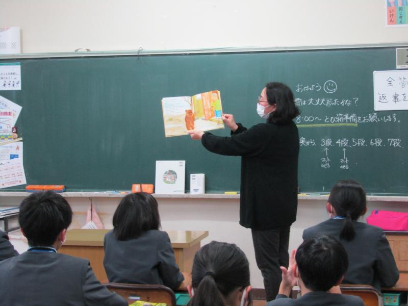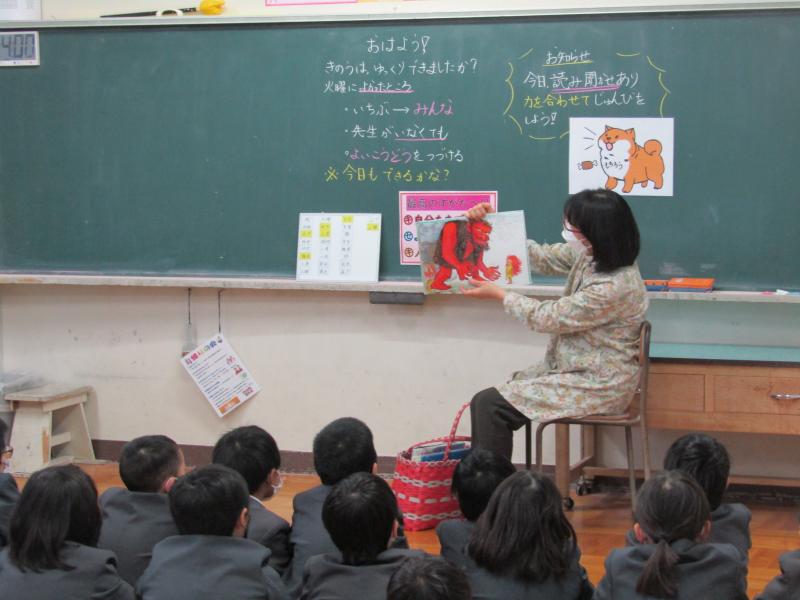 今日の朝は図書ボランティアさんの読み聞かせからスタートです。