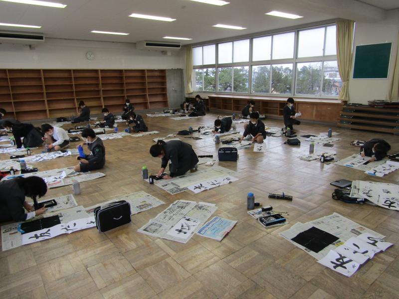 3年生が書き初め練習中です。