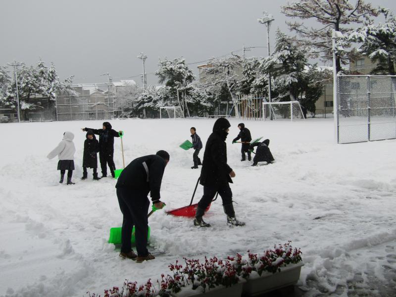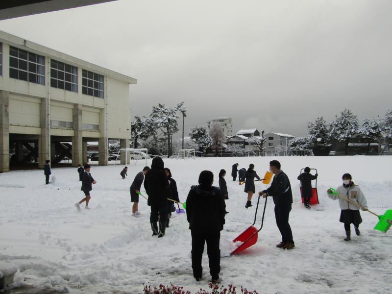 写真は、雪すかしをしてくれる自慢の河井っ子たちの姿です。
