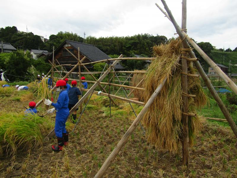 稲架(はざ)にかけて天日干しをします。