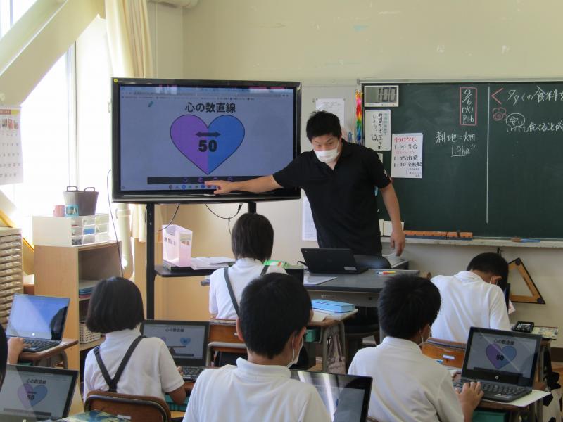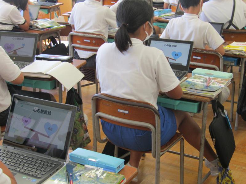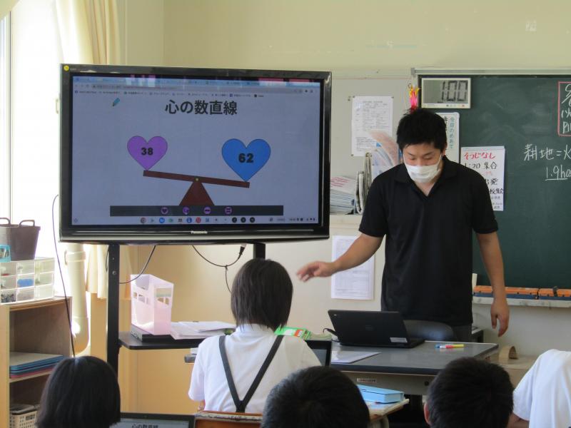 61体39など微妙な気持ちを表し、お互いの数直線を見合います。
