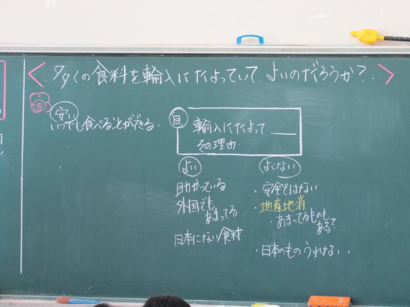 5年生の社会です。子どもたちは輸入の是非について問われました。
