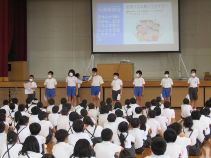 昼休みに集会を行いました。初めに表彰式、次に委員長からのお知らせがありました。