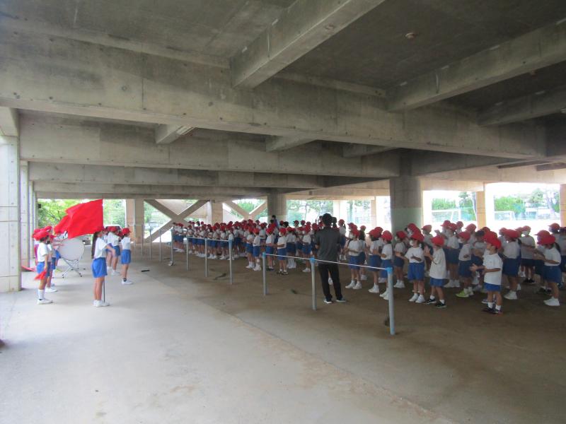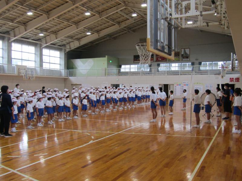 合同練習に入る前に6年生が練習の心構えを下級生たちに伝えました。