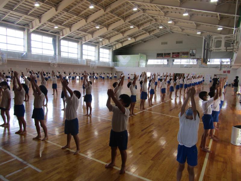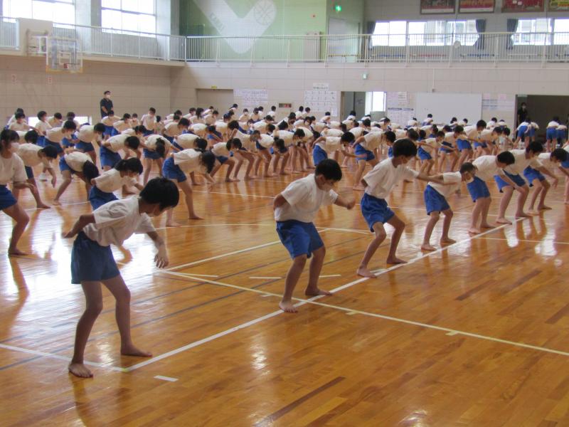 3~6年生の集団演技「よさこい河井ソーラン」の練習の様子です。