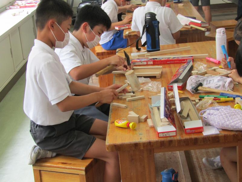 のこぎりで切った形をくぎ打ちで組み合わせます