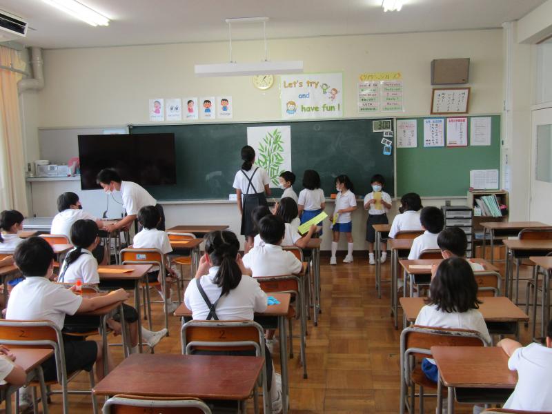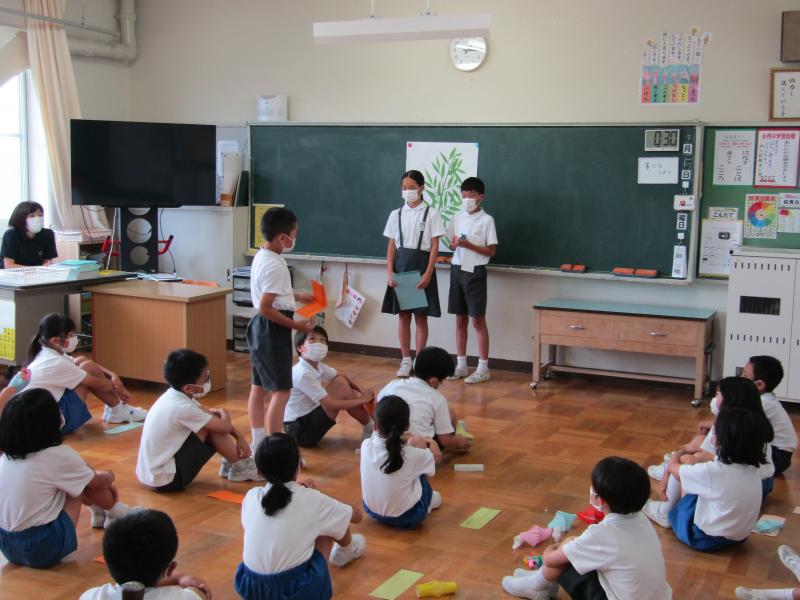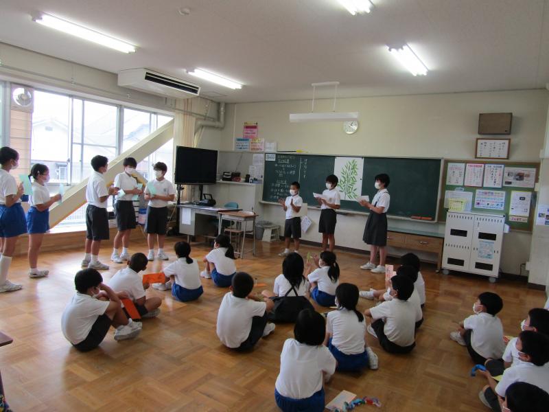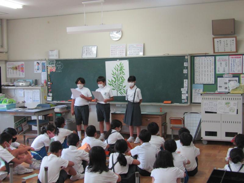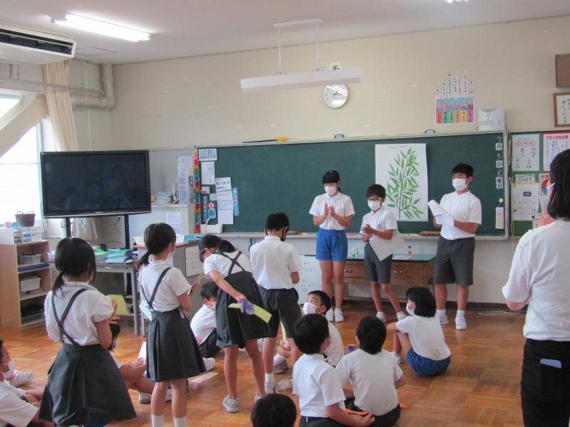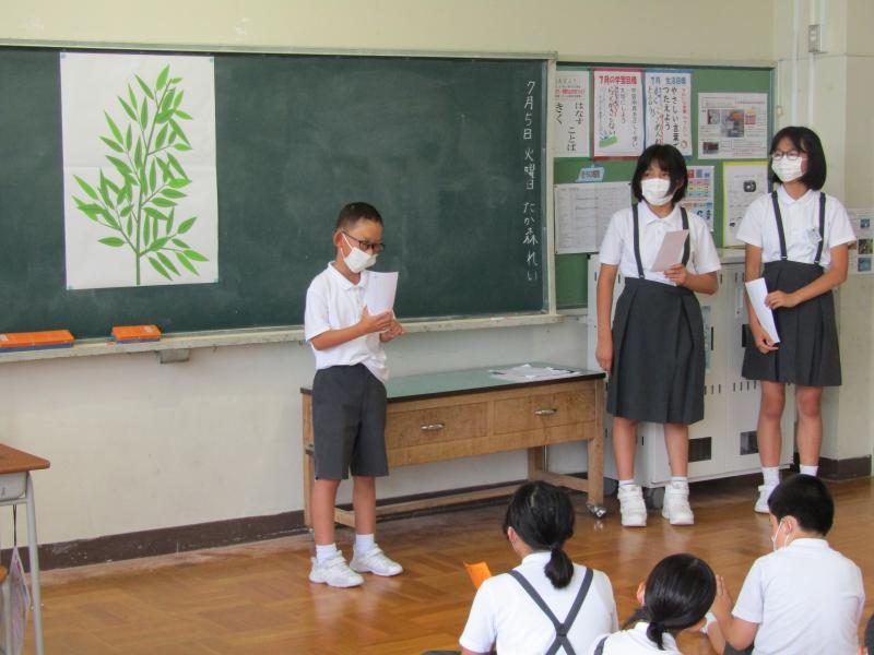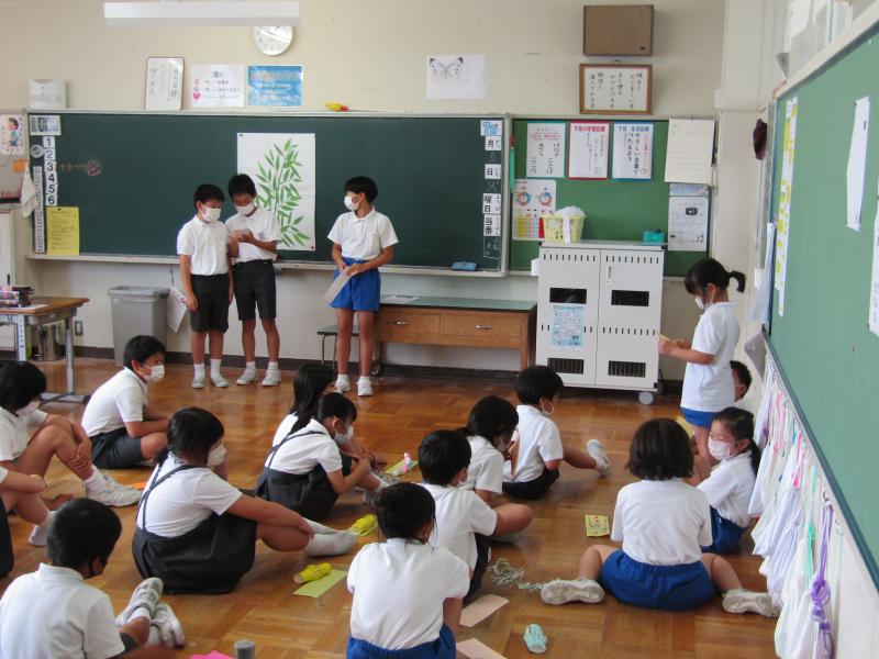 2022年7月5日 15時06分願い事を発表し合わると、短冊を笹の絵に貼り付けまました。