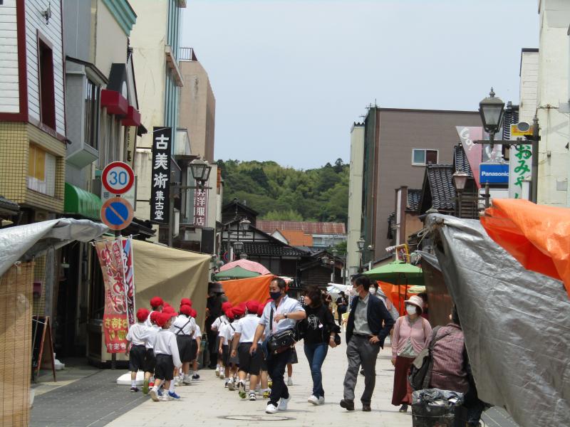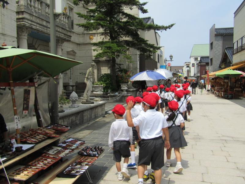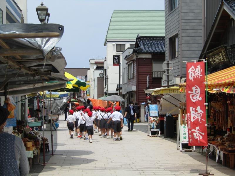 お店の人に元気を挨拶をします。「元気やね。どこの学校?」と声をかけられます。