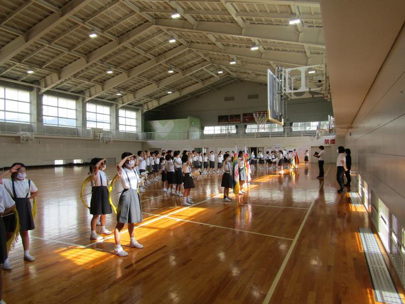 最初は準備運動です。体育委員会が見本となります。