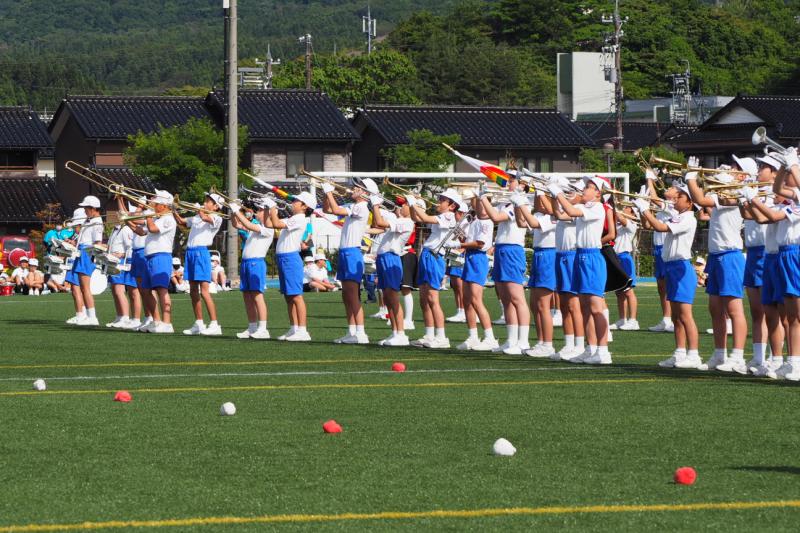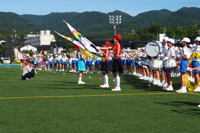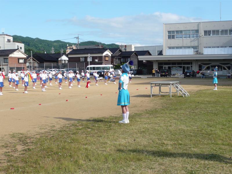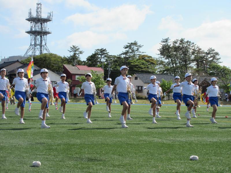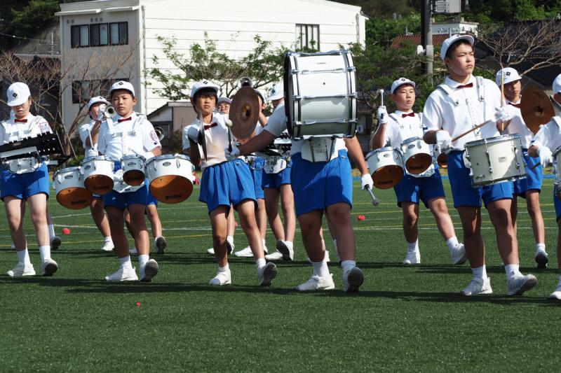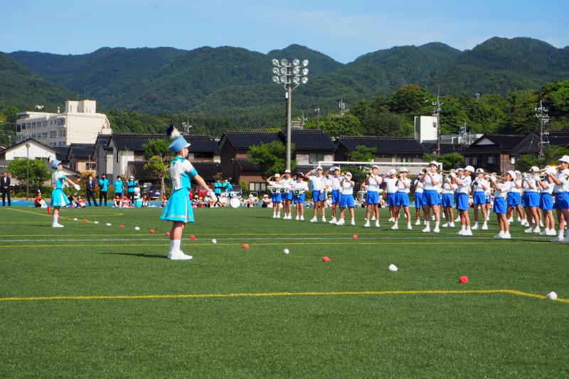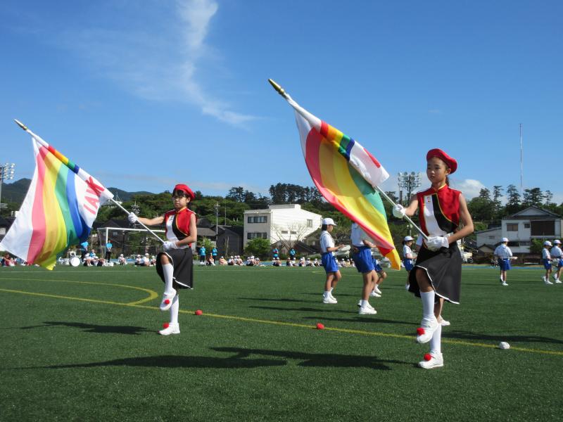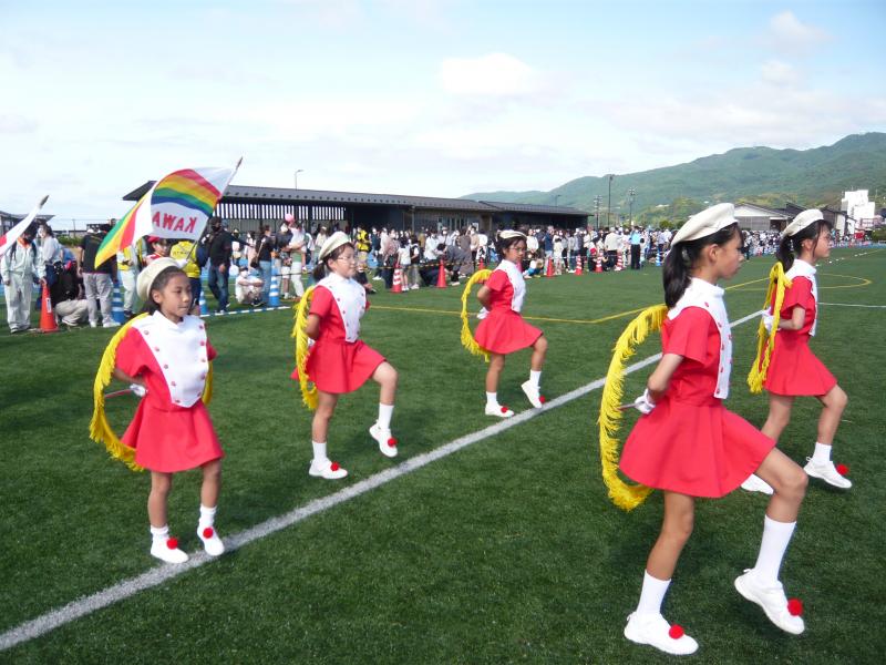 マリンタウン競技場でのドリル演奏の様子です。