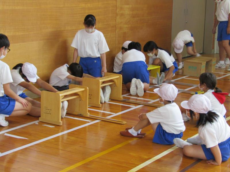 今日は縦割り班ごとにスポーツフェスタの練習を行いました。