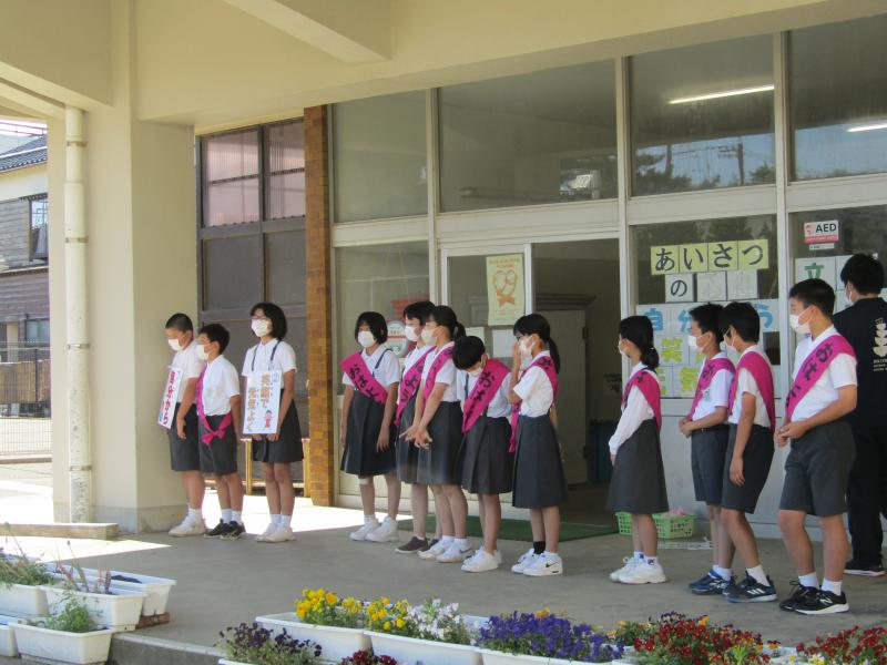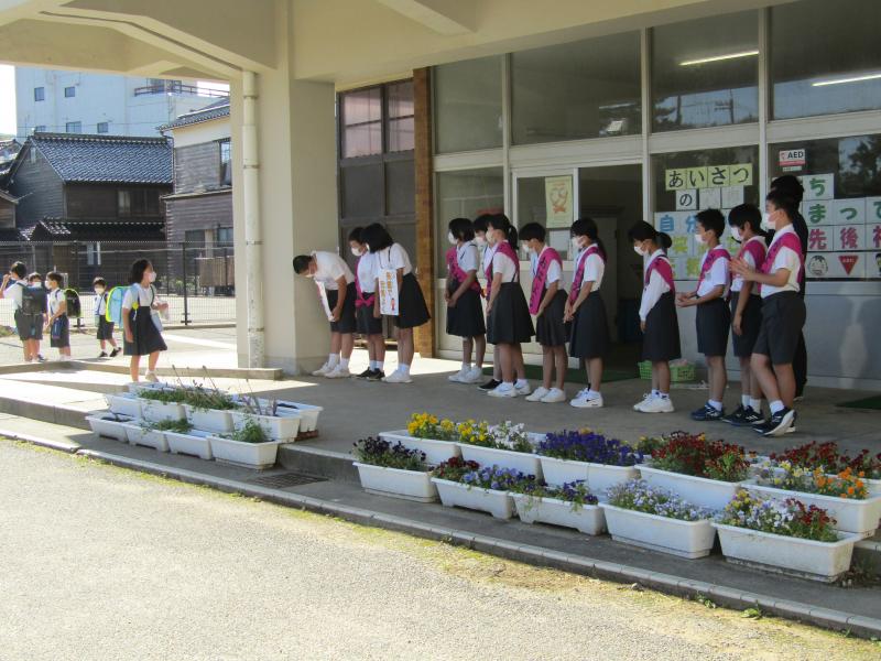 6年生が朝の挨拶運動を行ってくれました。