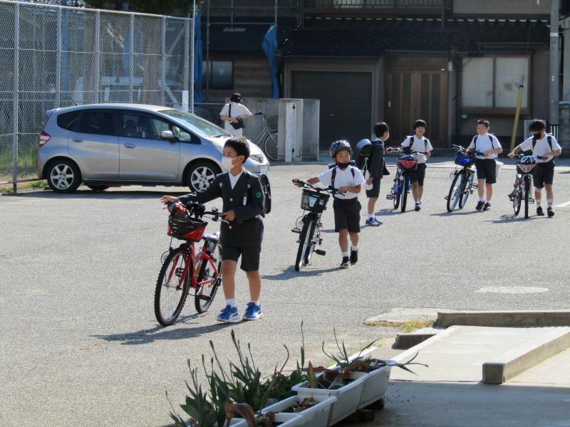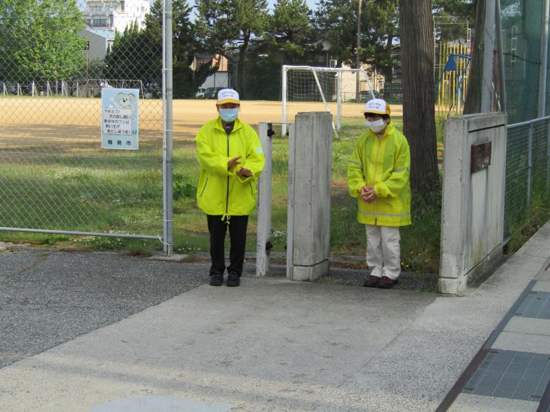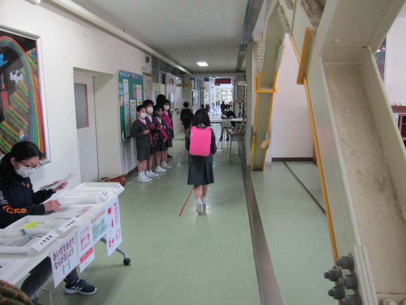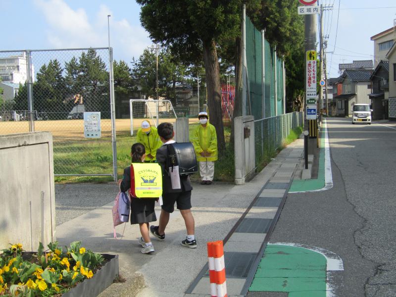朝は見守り隊の方に迎えられて