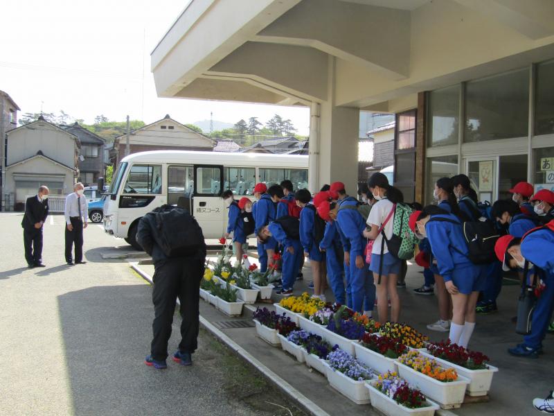 6年生はお世話になるバスの運転手さんへ挨拶をします。