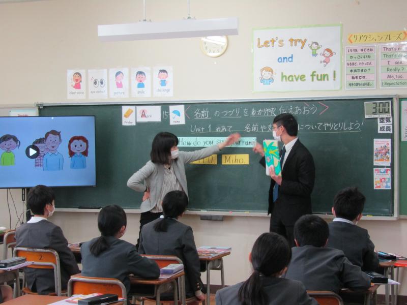 英語専科の先生とALTさんとのやりとりを見て学びます。