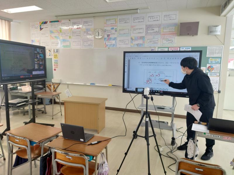 2月4日と7日の休校期間中、オンライン授業に取り組みました。クロームブックのMeet(ミート)の機能を活用し、児童の健康状態を把握したり、宿題として取り組んでいた問題の答え合わせをしたりしました。30分程度の短い時間ですが、児童の元気な様子を確認できましたし、学びの時間もつくることもできました。教師にとっても児童にとってもとても貴重な時間となりました。今回は3年生と5年生のみの取組でしたが、今後、全学年でも実施できるようにしていきます。