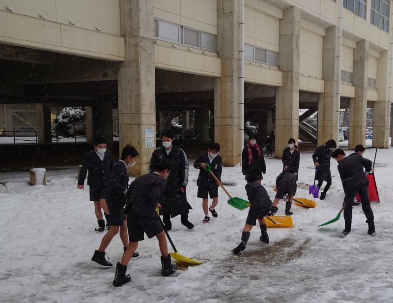17日(木)は、昨晩から降り積もった雪で児童玄関前が大変歩きにくい状態となっていました。職員が雪かきを始めると、登校した5年生と6年生児童が進んで除雪作業を手伝ってくれました。職員から声をかけて手伝ってもらったのではなく、児童たちからの進んでの行動に職員一同胸が熱くなりました。本校校長の学校ビジョンに、愛校心や校内貢献活動が掲げられています。これまでの様々な取組の中で、学校を大切に思い、自ら学校のために行動することをいとわない児童に成長してくれたことを大変嬉しく感じ、本校児童のことを改めて誇りに思いました。児童玄関前は、児童の働きのおかげですっきりときれいに除雪されました。