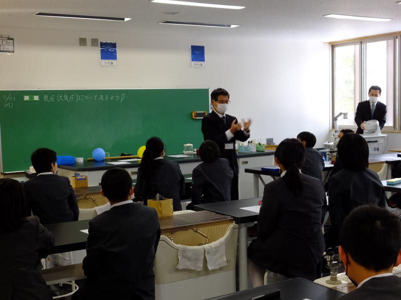 21日(月)の午後、輪島中学校の体験入学があり、6年生児童が理科の授業を体験しました。「気圧について考えよう!」という課題で、実験を通して関心を高めながら学ぶことができました。6年生児童は「楽しかった!」「中学校の授業が楽しみになった!」などの感想をもつことができ、中学校進学への意欲を高めることができました。また、輪島中学校の先生方からは挨拶や話の聴き方についてお褒めの言葉をいただきました。このような時に、快く体験入学を引き受けてくださった輪島中学校の永草校長先生をはじめ、様々なご準備をしていただいた先生方に心より感謝申し上げます。ありがとうございました。